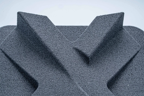 Once the part has been printed, only the support structures are removed; in its raw state, without any post-processing, the surface exhibits a uniform, sandblasted texture.